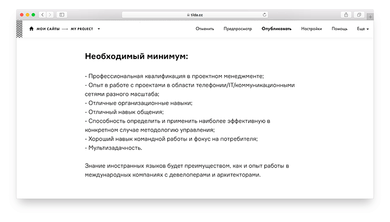 7. Проверить критические ошибки в вебмастере Тильды. Он покажет индивидуальные рекомендации для каждой страницы. Если у вас не задан тег h1 или нет описания сайта и читабельных url-адресов, вы узнаете об этом и сможете легко исправить.